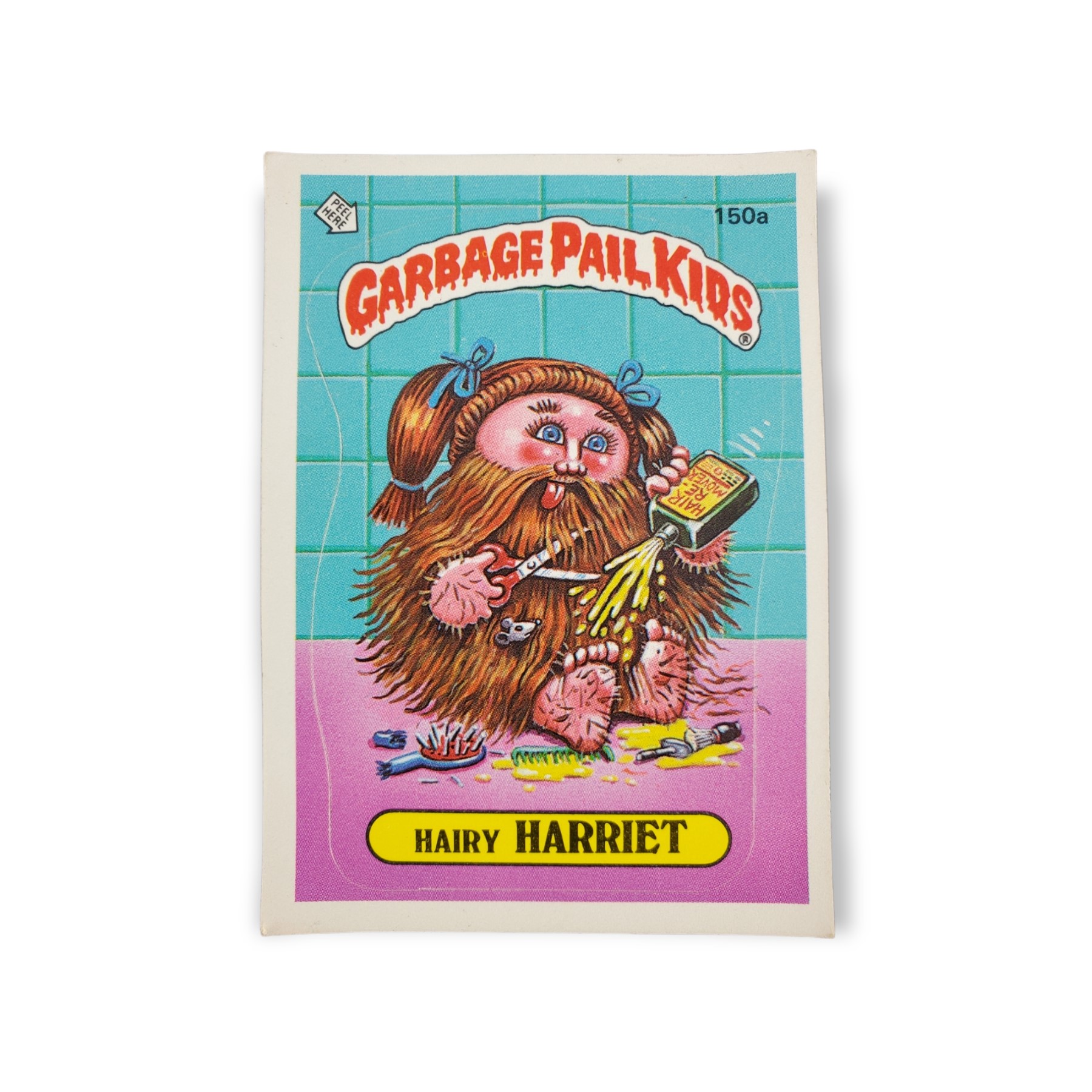 1986 Topps Garbage Pail Kids Original Series 4 Trading Card #150a Hairy Harriet Sticker – Variation: One * on copyright line. The cards condition should be considered moderately to heavily used or handled. The card may have any of the following: minor creases, stains, scratches, rounded corners, off centering, a miscut, misprint, or otherwise noted imperfection so please carefully review all available images.