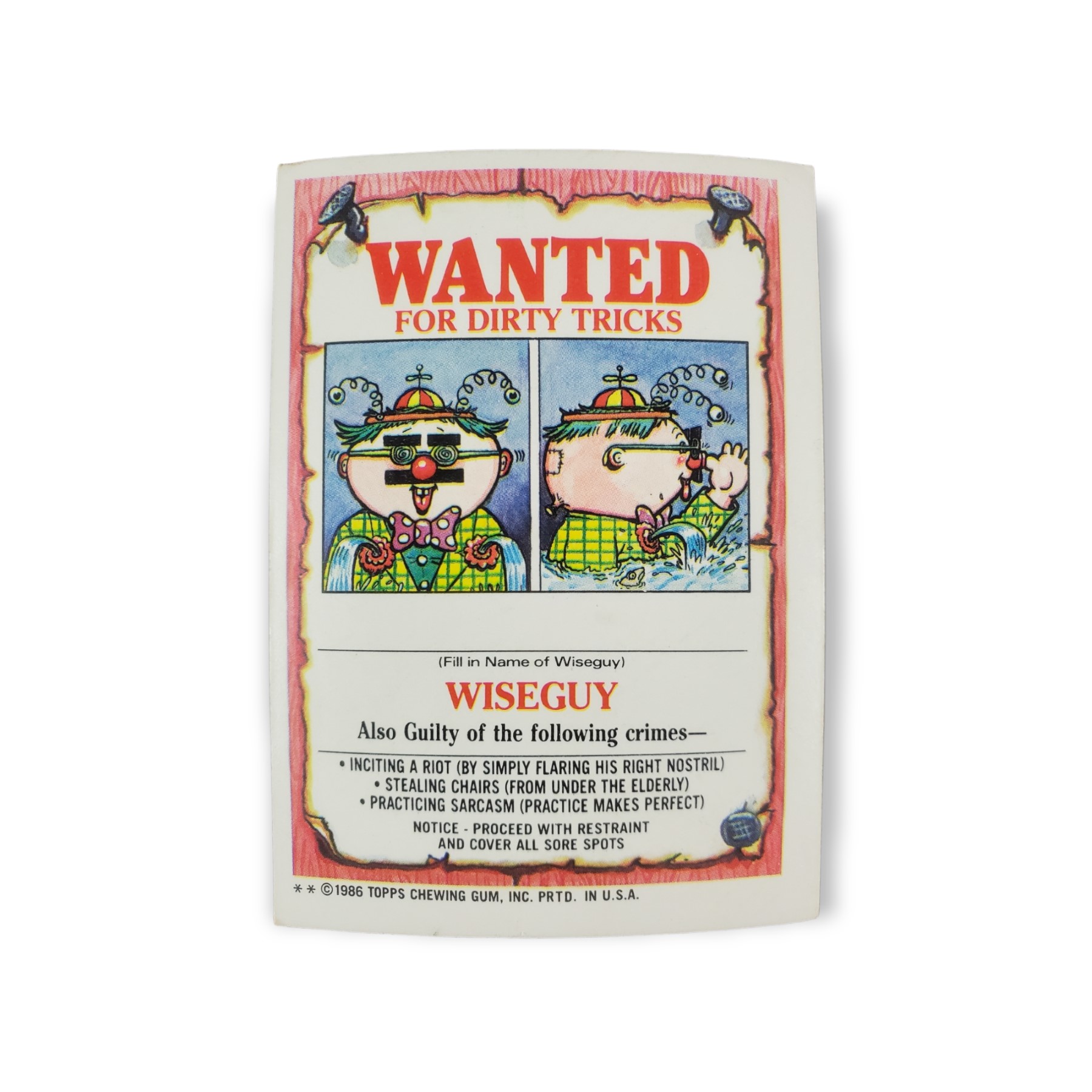 1986 Topps Garbage Pail Kids Original Series 4 Trading Card #153b Duncan Pumpkin Sticker – Corrected Error: No pink spiral mark above knife; Variation: Two ** on copyright line. The cards condition should be considered lightly to moderately used or handled. The card may have any of the following: little to no creasing, light scratches, slight off coloring, lightly worn corners, off centering, or otherwise noted imperfections so please carefully review all available images.