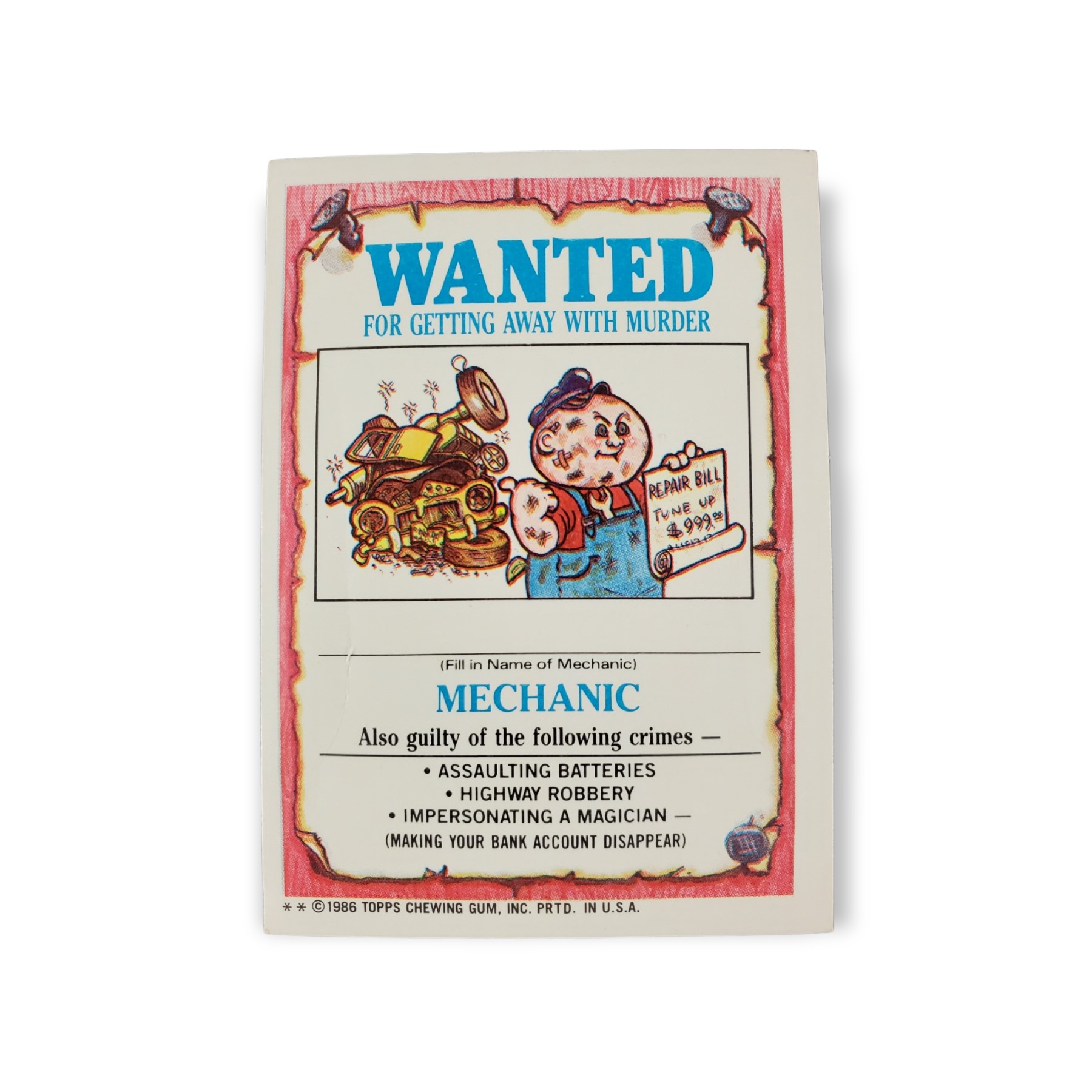 1986 Topps Garbage Pail Kids Original Series 4 Trading Card #160b Formalde Heidi Sticker – Corrected Error: Die cut is correct (does not cut through “G”); Variation: Two ** on copyright line. The cards condition should be considered moderately to heavily used or handled. The card may have any of the following: minor creases, stains, scratches, rounded corners, off centering, a miscut, misprint, or otherwise noted imperfection so please carefully review all available images.