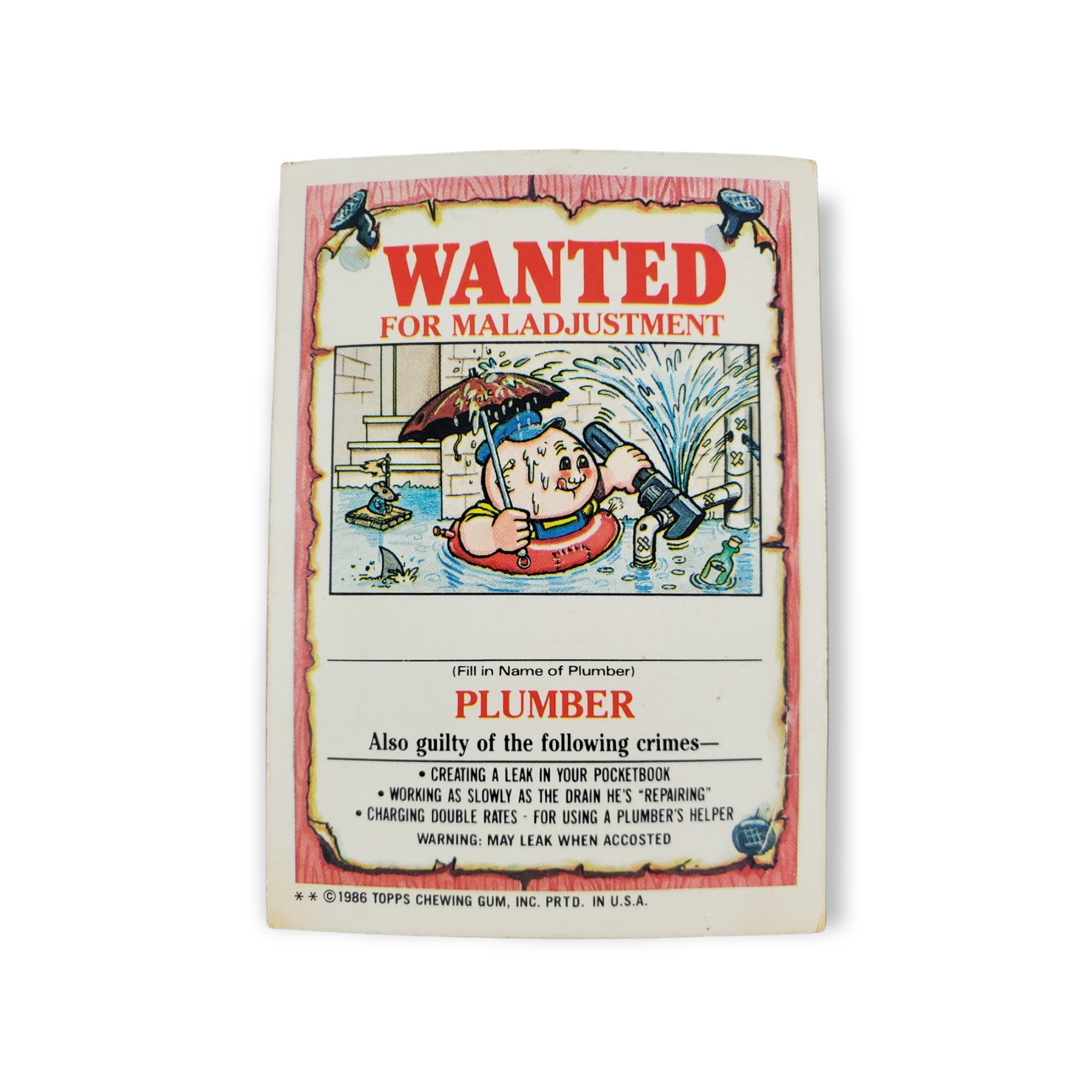 1986 Topps Garbage Pail Kids Original Series 4 Trading Card #166b No Way Jose Sticker – Variation: Two ** on copyright line. The cards condition should be considered moderately to heavily used or handled. The card may have any of the following: minor creases, stains, scratches, rounded corners, off centering, a miscut, misprint, or otherwise noted imperfection so please carefully review all available images.