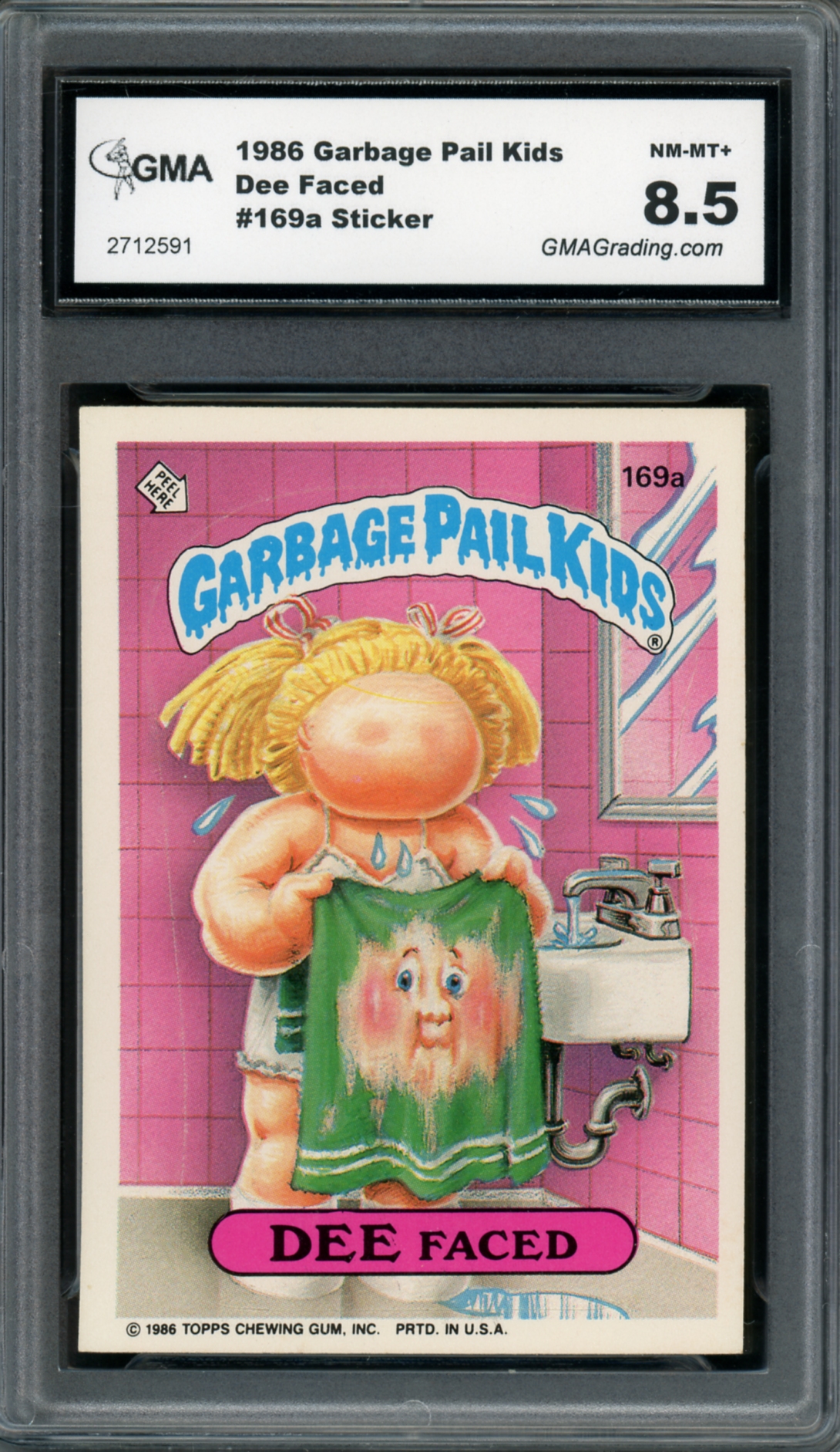1986 Topps Garbage Pail Kids Series 5 #169a Dee Faced Sticker GMA Graded 8.5 NM-MT+ Non-Sport Trading Card – Variation: Back is Orange Puzzle, Row 2 Right