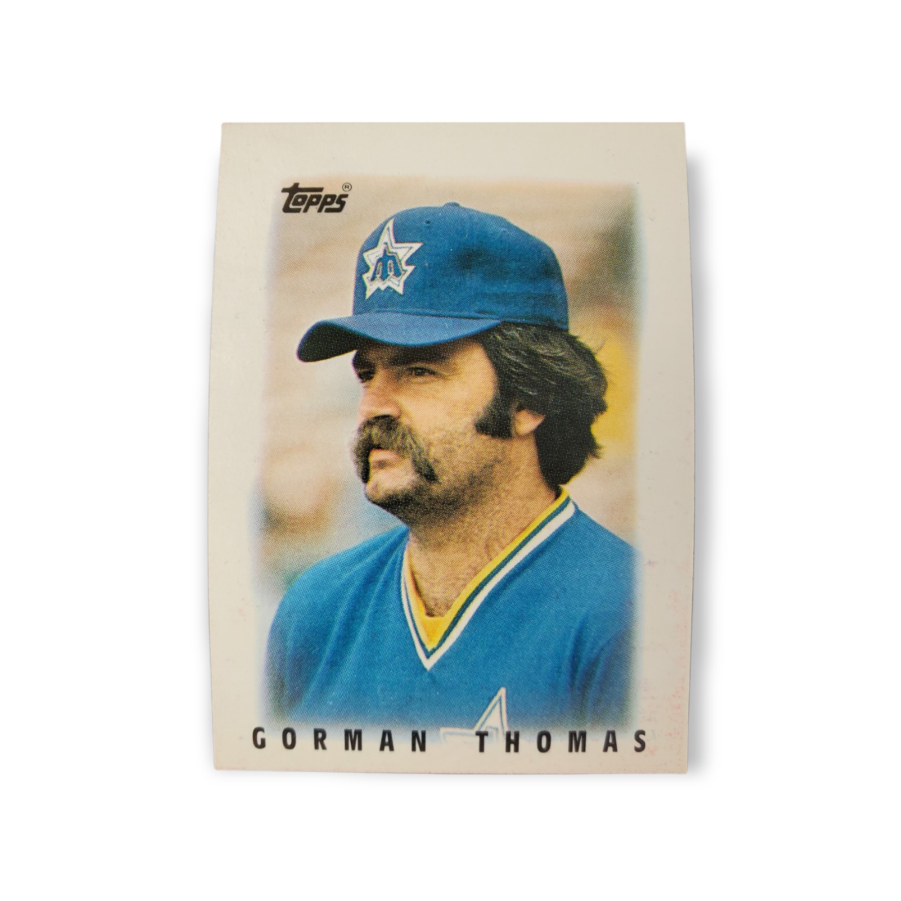 1986 Topps Mini Major League Leaders #31 Gorman Thomas Seattle Mariners Baseball Trading Card – The 1986 Topps Mini Major League Leaders baseball card set consists of 66 cards total, with each card measuring 2 1/8″ x 3″. The front of the card shows a picture of Gorman Thomas while the back of the card has his statistics from the previous year as well as his career stats and player profile.