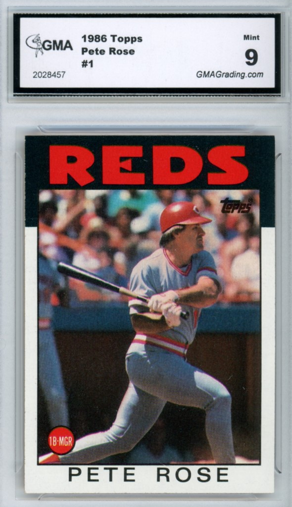 1986 Topps Pete Rose Cincinnati Reds Baseball Card #1 – GMA Professional Graded 9 Mint