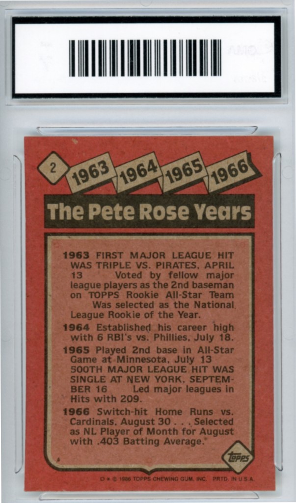 1986 Topps Pete Rose The Pete Rose Years Cincinnati Reds Baseball Card #2 – GMA Professional Graded 7 NM