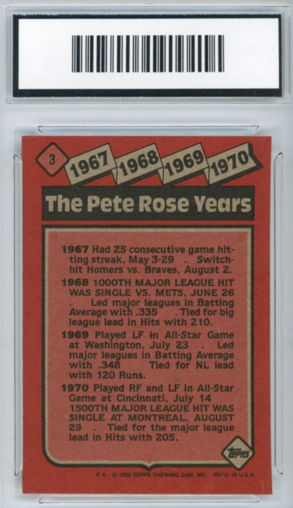 1986 Topps Pete Rose The Pete Rose Years Cincinnati Reds Baseball Card #3 – GMA Professional Graded 8 NM-MT