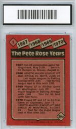 1986 Topps Pete Rose The Pete Rose Years Cincinnati Reds Baseball Card #3 – GMA Professional Graded 8 NM-MT