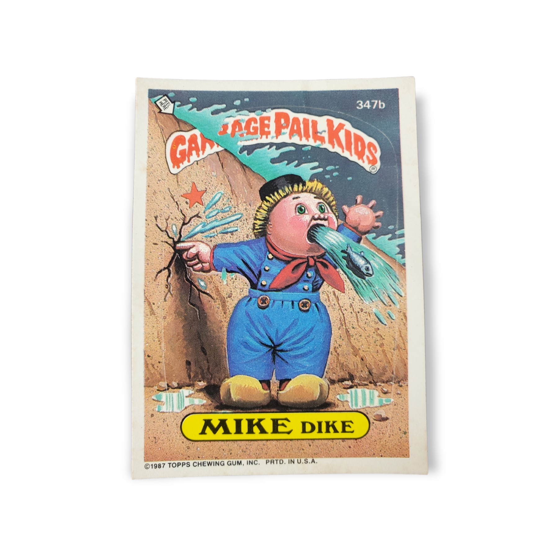 1987 Topps Garbage Pail Kids Original Series 9 Trading Card #347b Mike Dike Sticker – The cards condition should be considered moderately to heavily used or handled. The card may have any of the following: minor creases, stains, scratches, rounded corners, off centering, a miscut, misprint, or otherwise noted imperfection so please carefully review all available images.