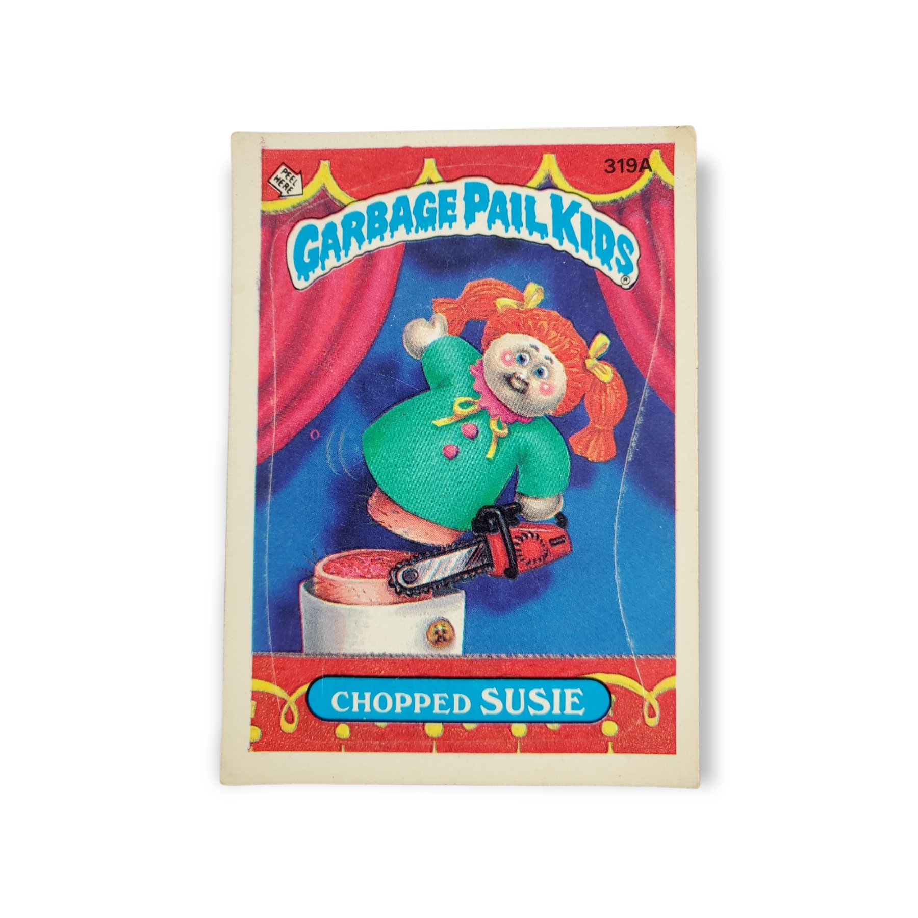 1987 Topps Garbage Pail Kids Series 8 Chopped Susie Sticker #319a – The back of the card features a puzzle piece.