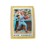 1987 Topps Mini Major League Leaders #30 Mike Schmidt Philadelphia Phillies Baseball Trading Card – The 1987 Topps Mini Major League Leaders baseball card set consists of 77 cards total, with each card measuring 2 1/8″ x 3″. The front of the card shows a picture of Mike Schmidt while the back of the card has his statistics from the previous year as well as his career stats and player profile.
