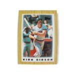 1987 Topps Mini Major League Leaders #53 Kirk Gibson Detroit Tigers Baseball Trading Card – The 1987 Topps Mini Major League Leaders baseball card set consists of 77 cards total, with each card measuring 2 1/8″ x 3″. The front of the card shows a picture of Kirk Gibson while the back of the card has his statistics from the previous year as well as his career stats and player profile.
