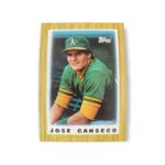 1987 Topps Mini Major League Leaders #68 Jose Canseco Oakland Athletics Baseball Trading Card – The 1987 Topps Mini Major League Leaders baseball card set consists of 77 cards total, with each card measuring 2 1/8″ x 3″. The front of the card shows a picture of Jose Canseco while the back of the card has his statistics from the previous year as well as his career stats and player profile.