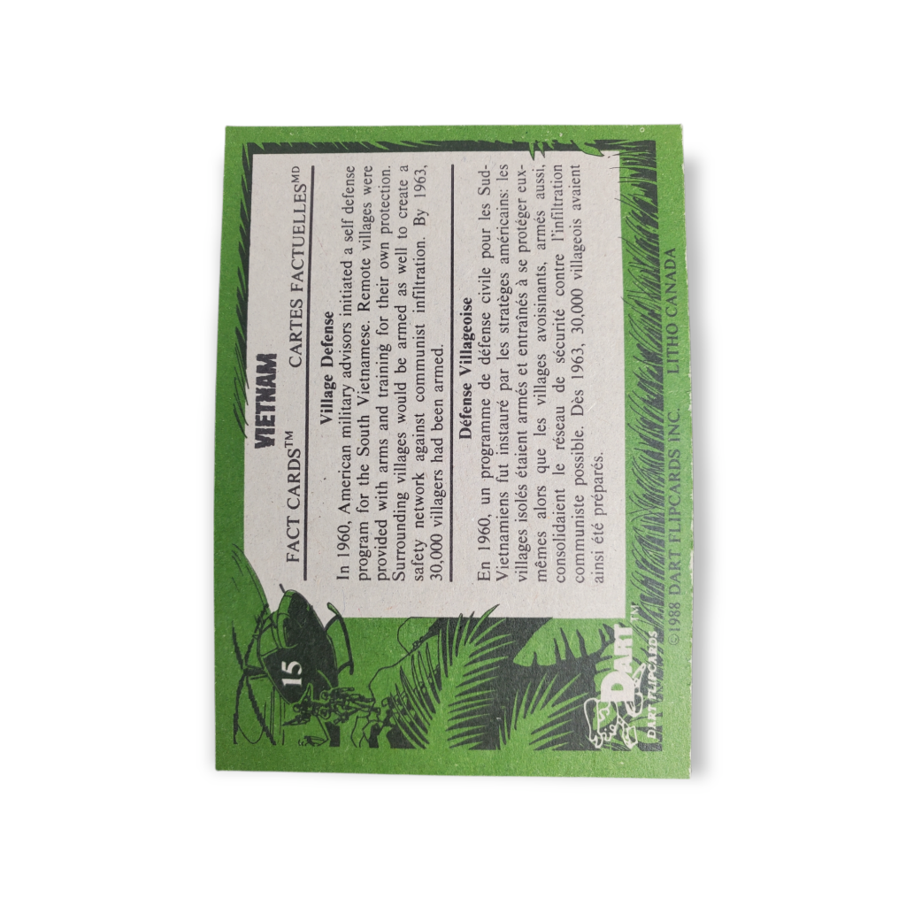 1988 Dart Flipcards Vietnam Fact Cards Trading Card #15 Village Defense – This card was manufactured in Canada.