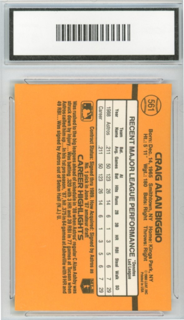 1989 Donruss Craig Biggio Rookie #561 – 8.5 NM-MT+