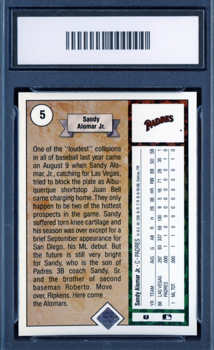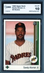 1989 Upper Deck Sandy Alomar Jr. Rookie Card #5 – GMA Professional Graded 10 Gem MT San Diego Padres Baseball Trading Card