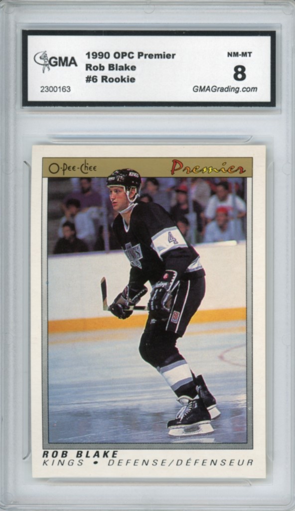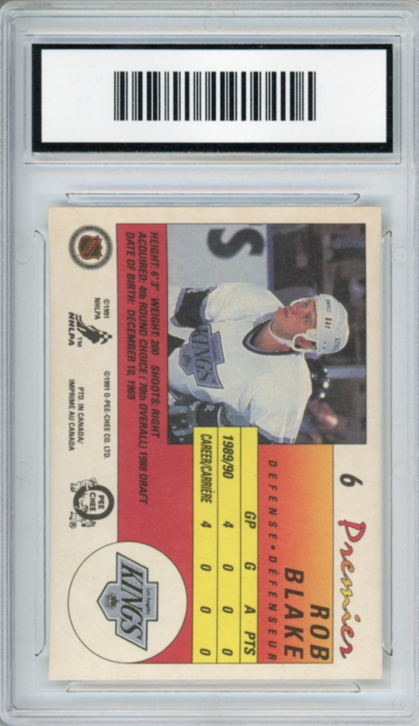 1990-91 O-Pee-Chee Premier Rob Blake Kings Rookie Hockey Card #6 – GMA Professional Graded 8 NM-MT
