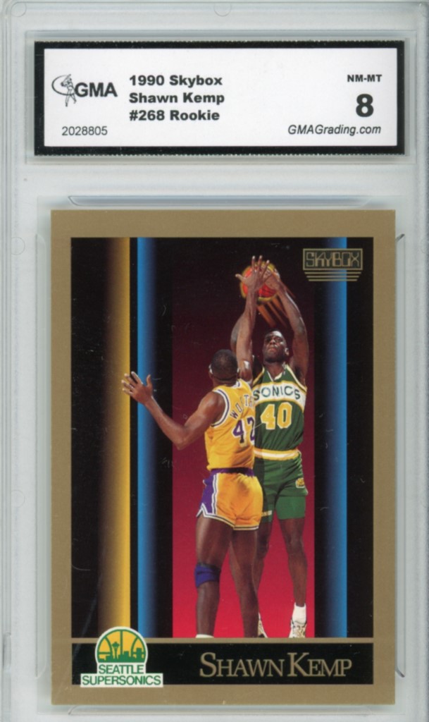 1990-91 Skybox Shawn Kemp Rookie Seattle Supersonics Basketball Card #268 – GMA Professional Graded 8 NM-MT