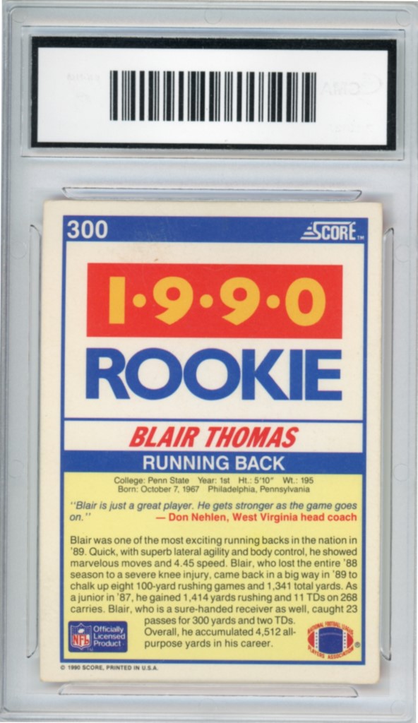 1990 Score Blair Thomas Rookie Football Card #300 – GMA Professional Graded 5 EX
