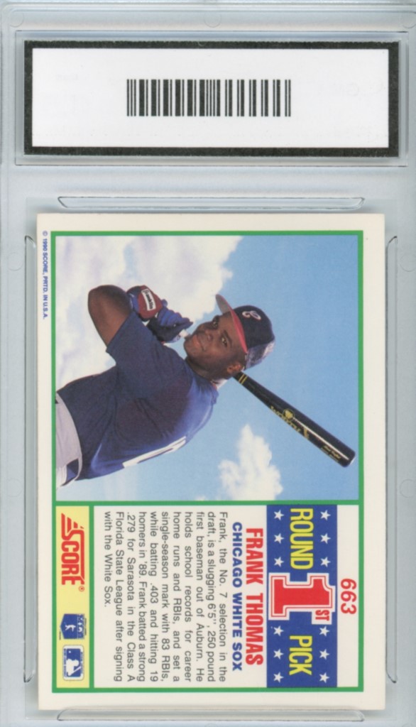 1990 Score Frank Thomas 1st Round Draft Pick Rookie Chicago White Sox Baseball Card #663 – GMA Professional Graded 8.5 NM-MT+