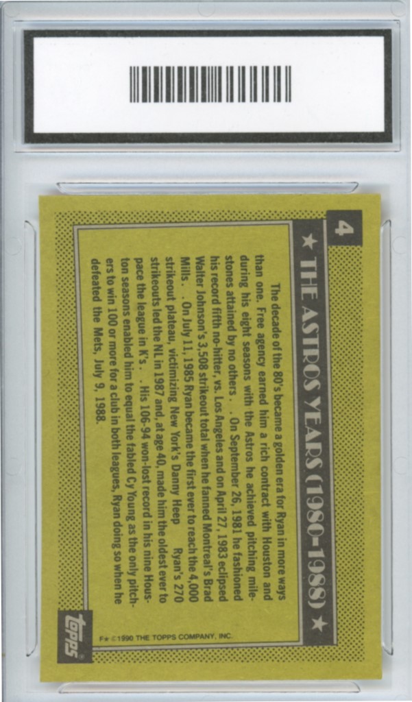 1990 Topps 5000 SO’s Nolan Ryan The Astros Years 1980-1988 Houston Astros Baseball Card #4 – GMA Professional Graded 10 Gem MT