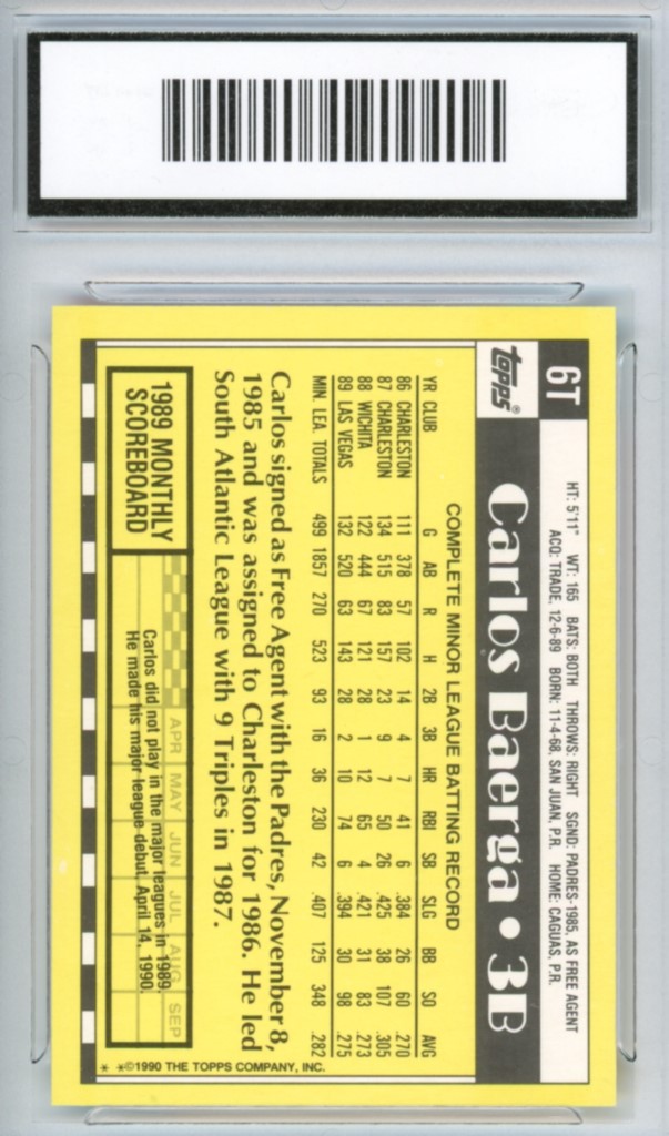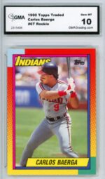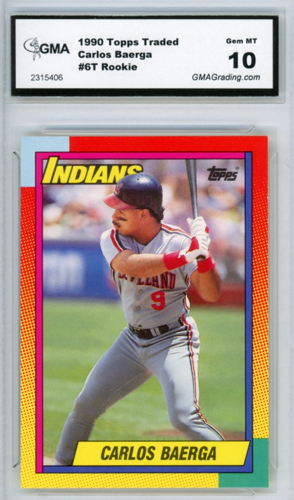 1990 Topps Traded Carlos Baerga Rookie Cleveland Indians Baseball Card #6T – GMA Professional Graded 10 Gem MT