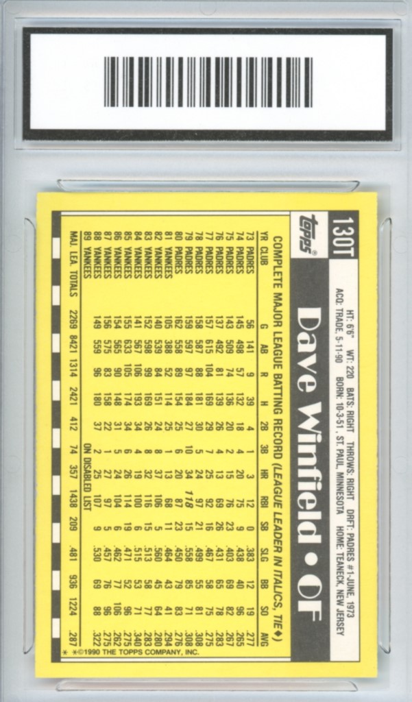 1990 Topps Traded Dave Winfield California Angels Baseball Card #130T – GMA Professional Graded 10 Gem MT