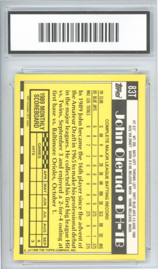 1990 Topps Traded John Olerud Rookie Toronto Blue Jays Baseball Card #83T – GMA Professional Graded 10 Gem MT