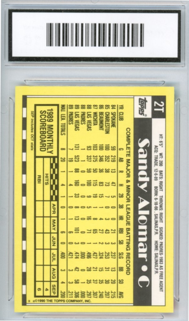 1990 Topps Traded Sandy Alomar Jr. Cleveland Indians Baseball Card #2T – GMA Professional Graded 10 Gem MT