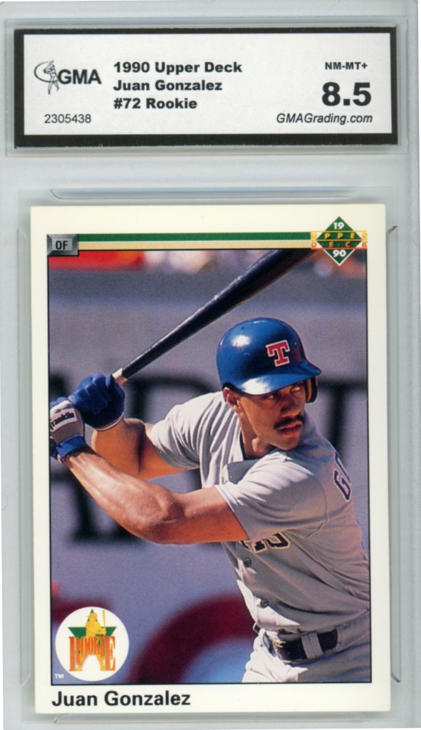 1990 Upper Deck Juan Gonzalez Star Rookie Texas Rangers Baseball Card #72 – GMA Professional Graded 8.5 NM-MT+