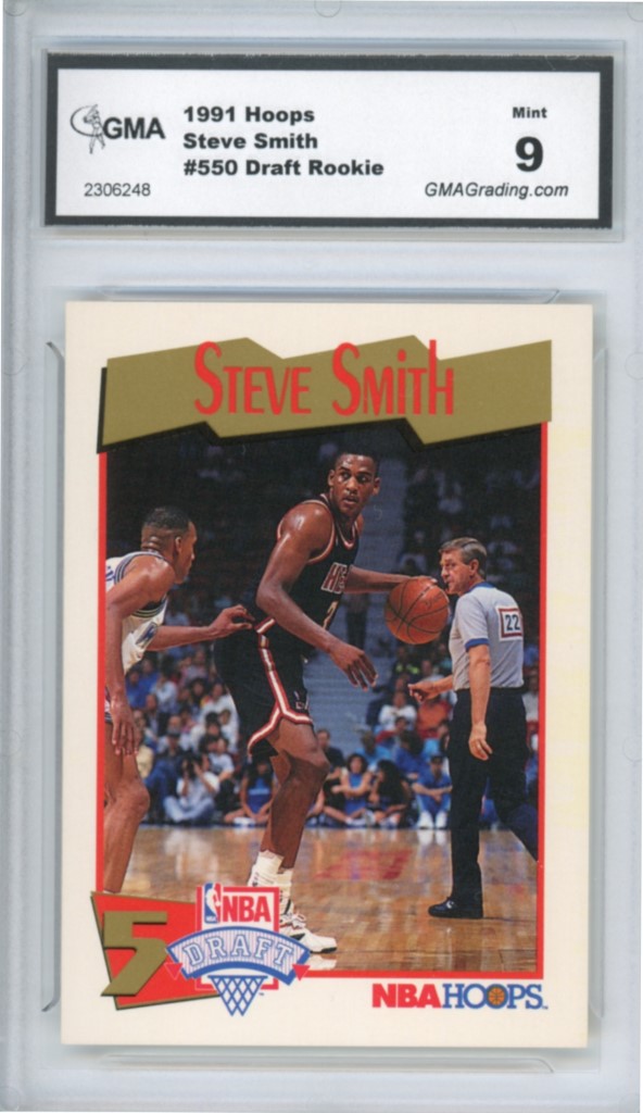 1991-92 Hoops Steve Smith Draft Rookie Basketball Card #550 – GMA Professional Graded 9 Mint