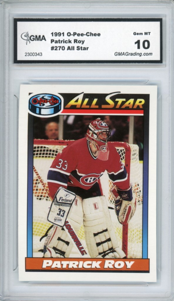 1991-92 O-Pee-Chee Patrick Roy All-Star Hockey Card #270 – GMA Professional Graded 10 Gem MT