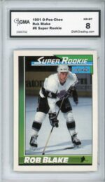 1991-92 O-Pee-Chee Rob Blake Super Rookie Hockey Card #6 – GMA Professional Graded 8 NM-MT