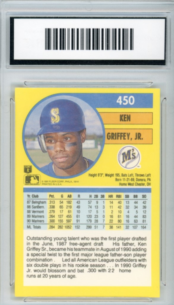 1991 Fleer Ken Griffey Jr. Commemorative Seattle Mariners Baseball Card #450 – GMA Professional Graded 9 Mint
