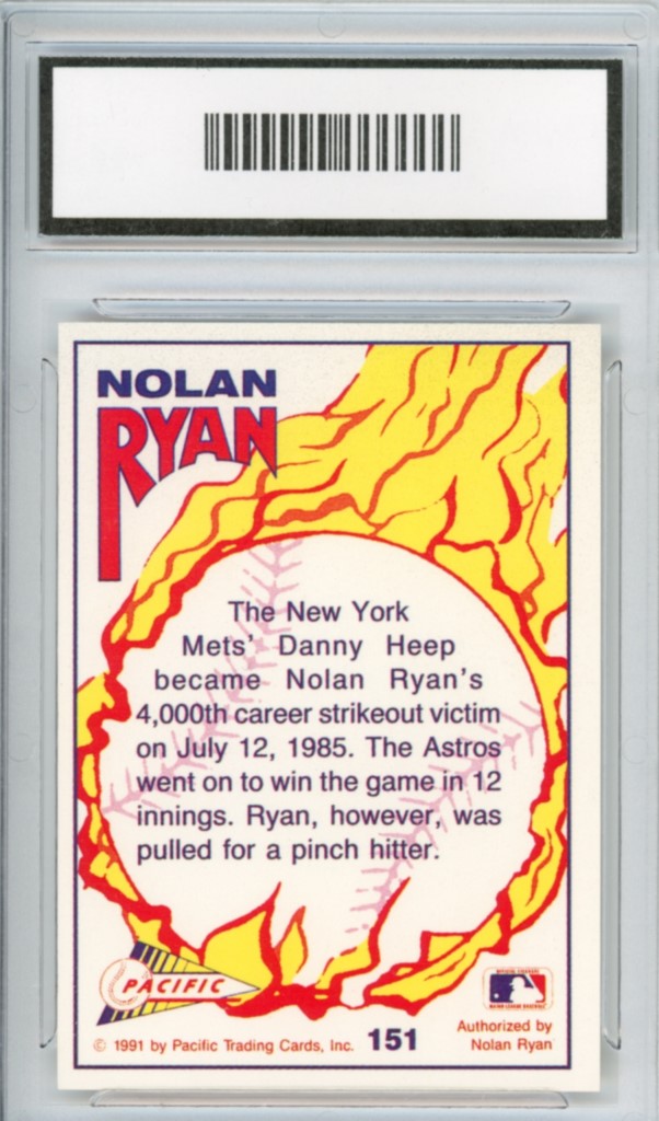 1991 Pacific Nolan Ryan 4,000th Strikeout Texas Rangers Baseball Card #151 – GMA Professional Graded 9 Mint
