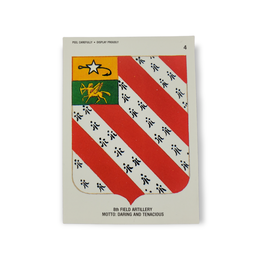 1991 Topps Desert Storm Series 1: Coalition for Peace Sticker #4 8th Field Artillery Motto: Daring And Tenacious – There may be some minor wax residue on the front or back of the card left from the wax wrapper.