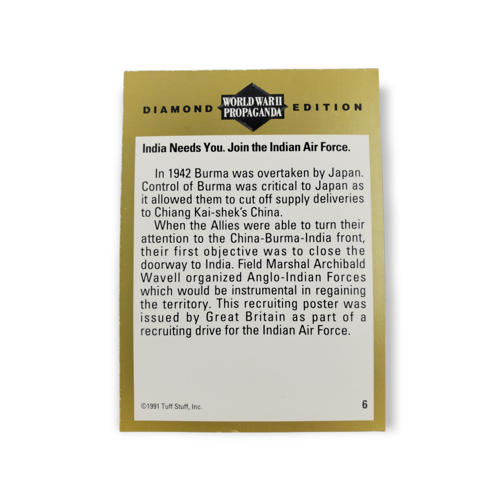1991 Tuff Stuff World War II Propaganda Diamond Edition Trading Card #6 India Needs You … Join the Indian Air Force