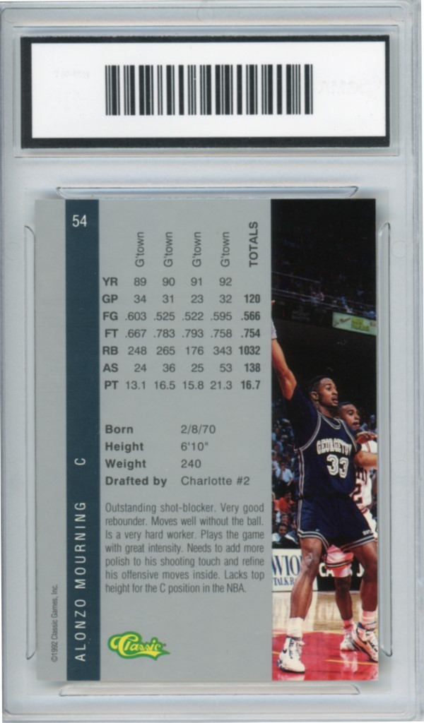 1992-93 Classic Four Sport Alonzo Mourning Rookie #54 – Graded 8.5 NM-MT+