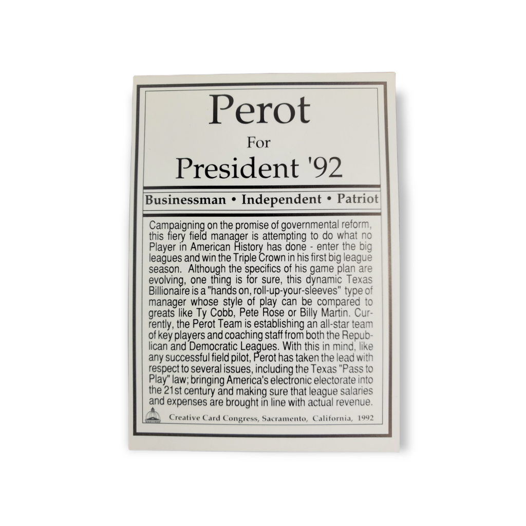 1992 Creative Card Congress Perot For President ’92 Ross Perot Trading Card