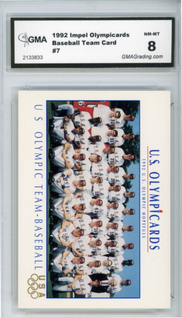 1992 Impel Olympicards Baseball Team Card Team USA Baseball Card #7 – GMA Professional Graded 8 NM-MT