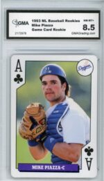 1993 Bicycle Sports Collection ML Baseball Rookies Mike Piazza Ace Clubs Game Card Rookie Los Angeles Dodgers Baseball Card – GMA Professional Graded 8.5 NM-MT+