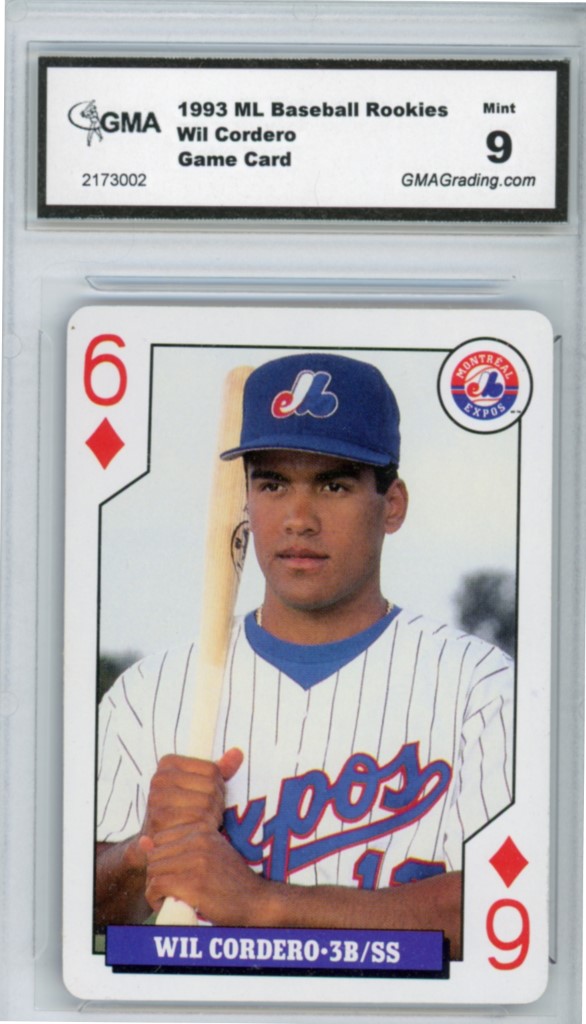 1993 Bicycle Sports Collection ML Baseball Rookies Wil Cordero 6 Diamonds Game Card Rookie Montreal Expos Baseball Card – GMA Professional Graded 9 Mint