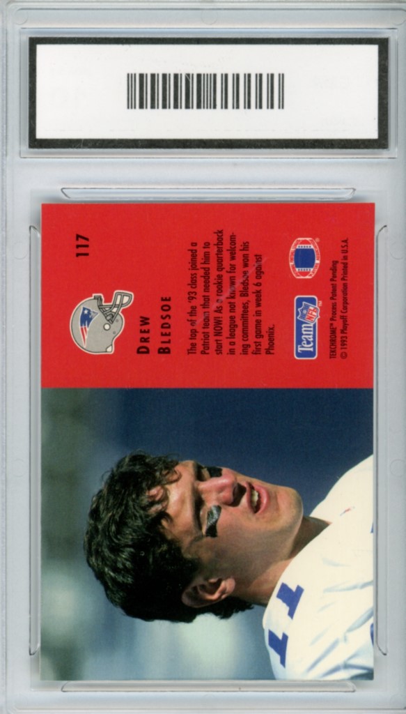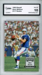 1993 Playoff Drew Bledsoe Rookie New England Patriots Football Card #117 – GMA Professional Graded 10 Gem MT