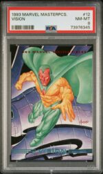 1993 Skybox Marvel Masterpieces #12 Vision PSA 8 NM-MT Marvel Comics Trading Card – We have multiple graded trading cards from the 1993 Skybox Marvel Masterpieces set for sale. If you are interested in starting your own set or adding to an existing one, visit our store to pick out whichever cards you need while they’re still available!
