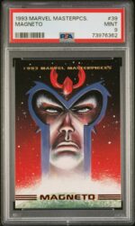 1993 Skybox Marvel Masterpieces #39 Magneto PSA 9 Mint Marvel Comics Trading Card – We have multiple graded trading cards from the 1993 Skybox Marvel Masterpieces set for sale. If you are interested in starting your own set or adding to an existing one, visit our store to pick out whichever cards you need while they’re still available!