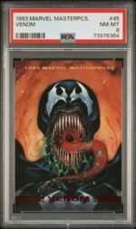 1993 Skybox Marvel Masterpieces #45 Venom PSA 8 NM-MT Marvel Comics Trading Card – We have multiple graded trading cards from the 1993 Skybox Marvel Masterpieces set for sale. If you are interested in starting your own set or adding to an existing one, visit our store to pick out whichever cards you need while they’re still available!