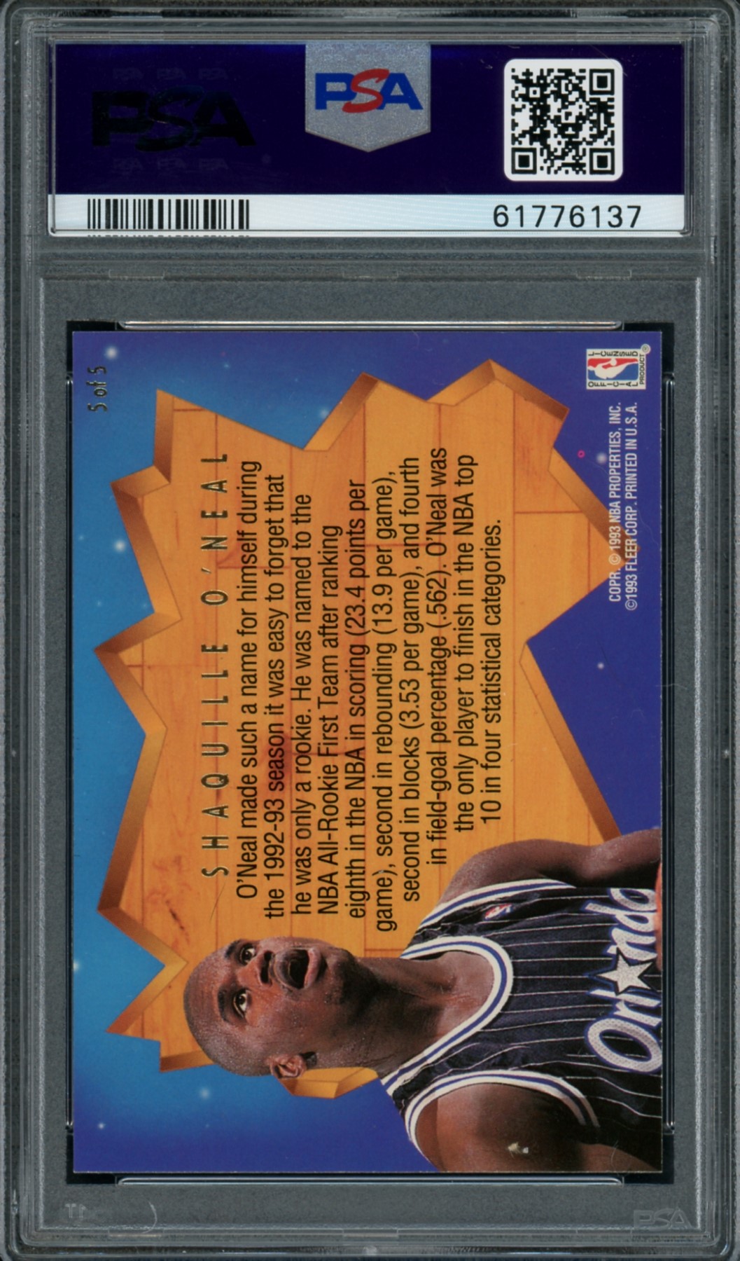 1993-94 Ultra All-Rookie Team #5 Shaquille O’Neal PSA 6 EX-NM Orlando Magic Basketball Card – This card has been professionally graded & authenticated by Professional Sports Authenticator (PSA).