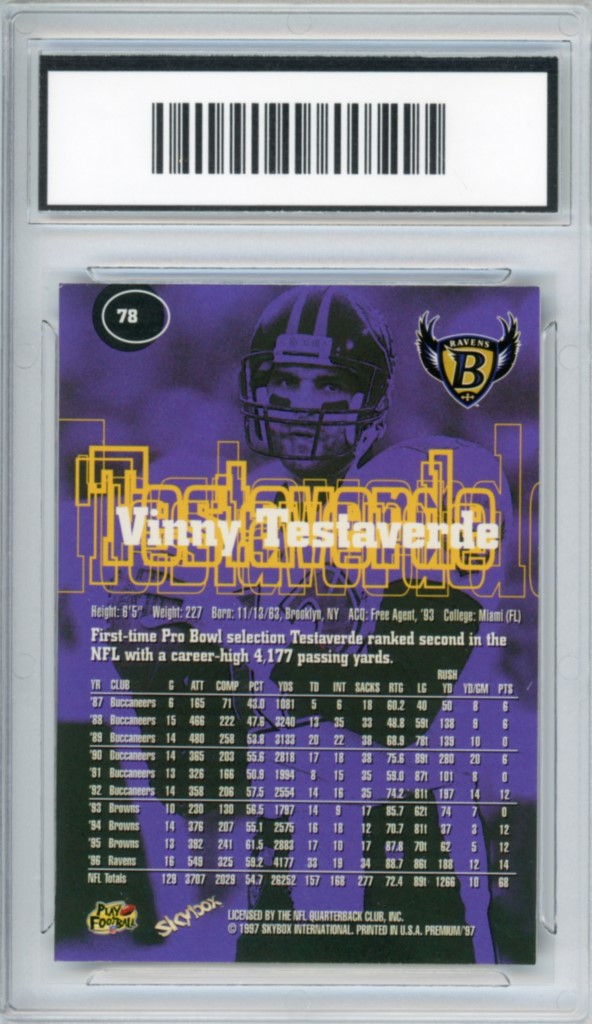 1997 Skybox Premium Vinny Testaverde Baltimore Ravens Football Card #78 – GMA Professional Graded 8 NM-MT