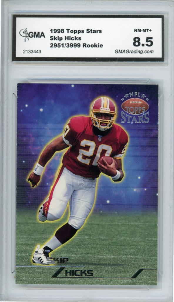 1998 Topps Stars Skip Hicks Rookie Kansas City Chiefs Football Card Silver Insert #2951/3999 – GMA Professional Graded 8.5 NM-MT+