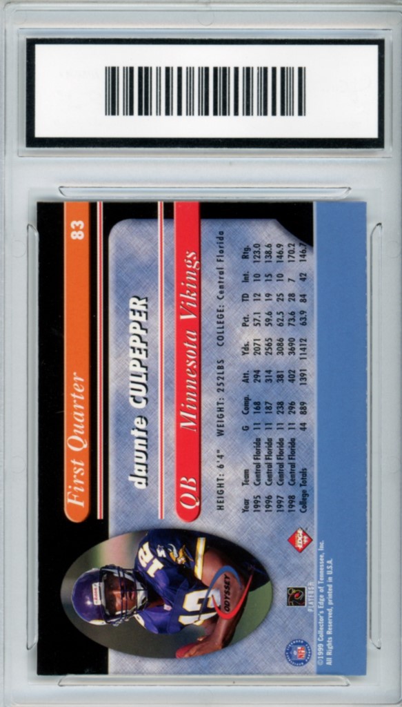 1999 Edge Odyssey Daunte Culpepper 1st Quarter Rookie Minnesota Vikings Football Card #83 – GMA Professional Graded 8 NM-MT