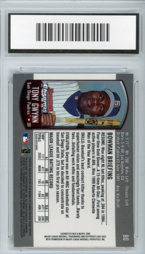 2000 Bowman Chrome Tony Gwynn San Diego Padres Baseball Card #80 – GMA Professional Graded 10 Gem MT