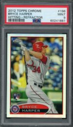 2012 Topps Chrome #196 Bryce Harper Refractor Rookie PSA 9 Mint Washington Nationals Baseball Card – This card has been professionally graded & authenticated by Professional Sports Authenticator (PSA).